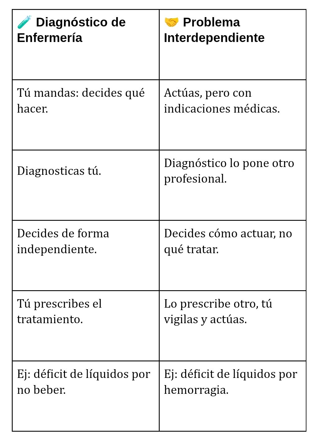 En estas últimas, tú no diagnosticas el problema principal ni decides solita qué tratamiento aplicar. Tu papel es colaborar en el tratamiento que ya viene indicado. Vamos, que eres la mano derecha que hace que todo funcione 🔧.